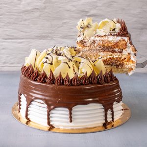 Cobertura: chantilly, chocolate meio amargo, raspas de chocolate branco e Leite Ninho polvilhado. 1kg